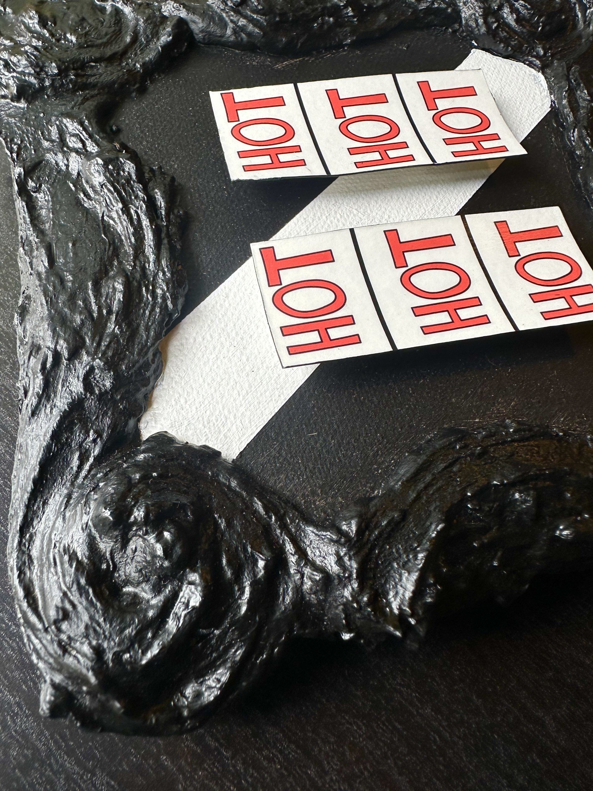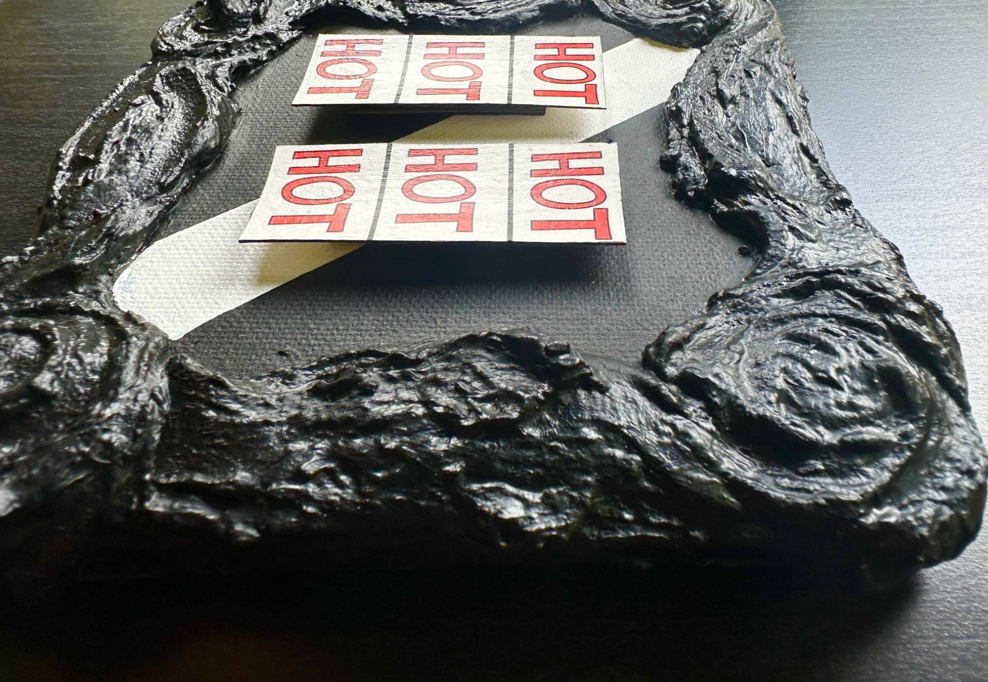 Handmade plaster frame, 3D design on black & white stripe painted background